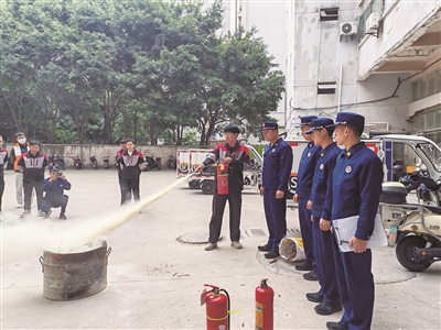 本报讯 近日,凤里街道龙华社区联合中骏物业开展消防安全演练。社区网格员、联防队员、物业经理、消防安全负责人及工作人员参加活动。