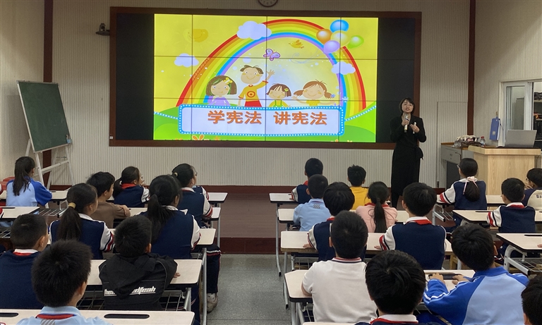 活动现场,该校多功能媒体厅内座无虚席。东埔三村关工委特邀的法律顾问蔡莉莉律师,用浅显易懂的语言,结合贴近学生生活的具体案例,介绍了宪法的基本概念、重要地位以及与我们日常生活的密切联系。互动问答环节,同学们踊跃参与,积极思考,就自己关心的问题进行提问,蔡律师一一予以热情专业解答。活动旨在通过生动讲解,让宪法知识深入校园,在孩子们心中播撒法治的种子。(记者 王国良 郭雅霞 通讯员 邱家瑜)