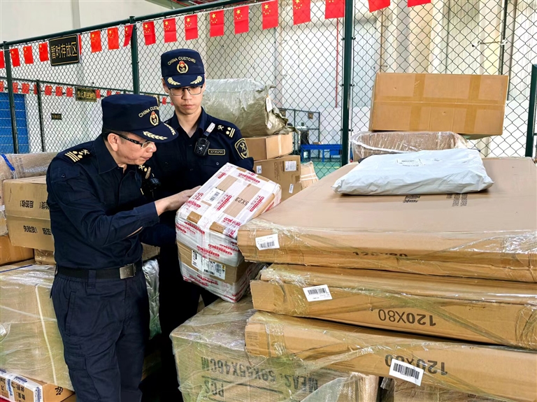 据了解,为全力支持泉州B保高质量发展,泉州海关采取多项有力措施:组建工作专班,“一对一”帮助企业开展保税物流政策辅导,突出政策创新叠加优势,支持企业用好用足保税政策;精心制定保税物流监管方案,创新运用“一票多车”“一仓两用”监管模式,提升通关时效90%以上;指导上线“泉州B保信息化管理系统”等平台,利用CT机智能审图、同屏比对等智慧监管,运用“一次报关、一次查验、一次放行”区港联动通关模式,保障安全高效通关,助推加快“泉品出海”步伐。图为海关关员在泉州B保对出口货物进行查验、监管
