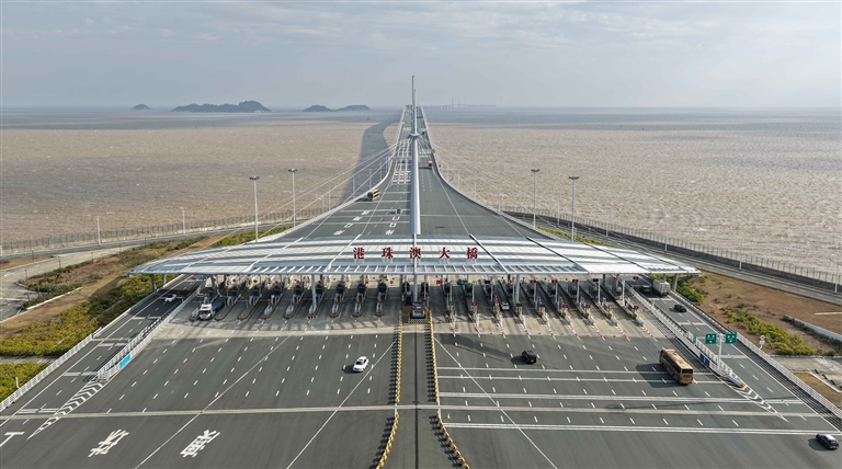 这是1月6日拍摄的港珠澳大桥出入口(无人机照片)。自2018年10月开通到2026年1月6日,经港珠澳大桥珠海公路口岸往来粤港澳三地的旅客突破1亿人次。港珠澳大桥全长55公里,是世界最长的跨海大桥。2018年10月,大桥正式建成通车,香港到珠海、澳门的车程从3个小时缩短至约45分钟,大大缩短三地时空距离。随着“澳车北上”“港车北上”“粤车南下”等政策相继实施,大桥见证了粤港澳大湾区融合的加速度。 (新华)