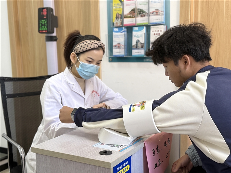 本报讯 1月7日,泉州海洋职业学院校园内开展2026年春季征兵校内初检工作。据悉,该校创新征兵服务模式,实现了全省首例高校校内初检。