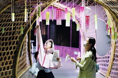 近日,在嘉兴市秀洲区非物质文化遗产馆,小朋友和家长参加“非遗游园打卡”活动。金鹏 摄