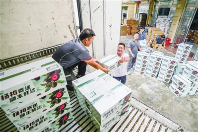 交易中心对面的“当日达”发货点一派繁忙景象。这里仅限温州同城寄送。与寻常站点不同,这里的杨梅少了精美的纸盒包装,贴着快递单的蓝色果筐正通过“裸装速递”模式发往温州各地。“没有过度包装的损耗,顾客收到的就是枝头原味。”顺丰速运龙湖营运站负责人谷志豪说,温州市区消费者吃到的杨梅,2小时前可能还挂在树上。目前该站点日均同城订单超1500公斤。