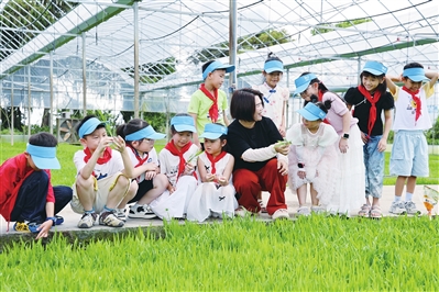 小学生参观智慧农业大棚