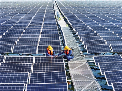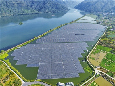 近期晴热天气,使得位于建德市三都镇春江源村的浙江建德中电渔光互补光伏电厂光电转换效能大增,日均光伏发电量超10万千瓦时。该电厂利用春江源村420亩鱼塘的上部空间搭建光伏板,年均发电量达2000万千瓦时,可减少碳排放1.4万余吨,节水5.4万立方米,同时促进当地村集体经济增收。