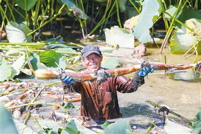 近日,在德清县康乾街道新琪村荷塘里,藕农加紧挖藕、冲洗、分装、运输,准备供应市场。