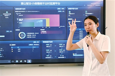 萧山梅林村工作人员介绍智慧健康监测平台。毛竹 摄