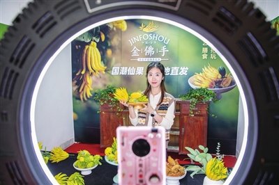 “80后”电商带头人吴康,2022年从邻镇来到北山口村创业,组建起12人的团队,年销售额超过600万元。“我们大部分货源从农户手中采购,也有几家合作多年、规模较大的稳定供应商。”吴康介绍,他的团队运营着5个直播间,其中2个主打佛手盆栽,3个销售鲜果与加工产品,覆盖抖音、小红书、微信视频号等平台,销量不错。