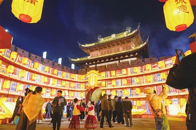 2月11日晚,2026宁波江北慈城马年新春灯会正式启幕。近百组彩灯璀璨亮相,40余组花灯沿古城墙依次铺陈,光影与古建交相辉映,为市民、游客献上一场新春光影盛宴,满城尽是喜庆祥和的年味。
