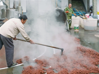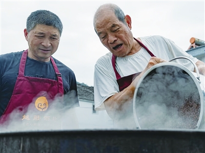 这只是同山镇“一片酒香富一方水土”的生动缩影。为了让酒香飘得更远、惠及更多百姓,当地探索出独具特色的“大企帮小店”发展模式。在龙头企业的带动下,像越庄酒作坊这样的70余家传统酒坊完成了标准化改造,生产环境、酿造工艺全面升级,面貌焕然一新。作坊的年产量实现倍增,生意愈发红火,还顺势带动周边农户就业。