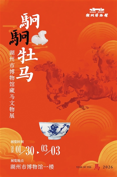 丙午马年来临之际,湖州市博物馆精选馆藏马文物,涵盖瓷器、玉器、铜器、书画等多个门类,打造“駉駉牡马——湖州市博物馆藏马文物展”,邀您一同奔向那生机勃勃、吉祥美满的马年新春!