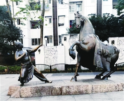 清晨6时,路灯刚熄,天光从梧桐叶的缝隙里漏下来,在马塍路上投下碎金。我踩过这些光斑,脚步声在静谧中格外清晰。这条路位于杭州市西湖区,我已走了30年,从年富力强的中年到步履蹒跚的老者。此刻,我的右手攥着一块冰凉坚硬的东西——半片锈蚀的马蹄铁,这是小区修路时挖掘出来的。它硌着掌心,像一枚来自时光深处的钥匙。走到马塍路小广场中央,我摸着一匹战马雕塑,闭上眼,手掌贴上马背,脑海中突然如潮水般涌来800年前的马蹄声。