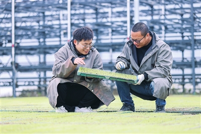 3月17日,德清县洛舍镇的先锋农机集中育秧中心,农技人员正在智能育秧大棚内观察秧苗长势。近年来,德清县通过智能化育秧工厂,开展水稻集中育秧,以科技赋能春耕生产,夯实粮食稳产基础。