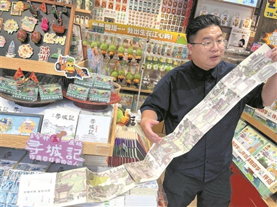 此后的一年多时间里,朱铭团队带着《寻城记》到处摆摊,慢慢打开了市场。去年国庆,当“饱塔文创”在温州五马街公园路历史街区开业时,很多《寻城记》的粉丝都来捧场。