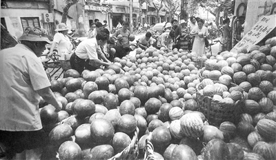 1998年,杭州市中山北路上的西瓜摊。