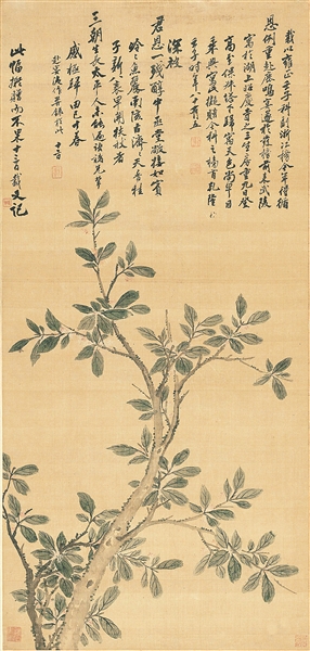 道光七年(1827),与钱载有亲戚关系的周汝珍在朋友处见到这幅珍贵的《桂枝图》后非常感慨:当年钱载作这幅画是想赠送给“解首”(即解元)的,因未遇到,此画就一直留在书房,距今已有30多年了,“披图追昔,不觉怃然”,便在边上题了一首七律以示怀念。一年后,嘉兴举人黄灏见到此图后,也即兴题七律一章。咸丰四年(1854),海盐举人朱庆时又有“奉题箨石宗伯设色桂花”的题词。时间到了2012年,这幅尺寸为112×53厘米的《桂枝图》在中国嘉德春季拍卖会上拍卖,成交价达34.5万元。