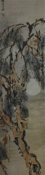 虚谷(1823~1896),清代画坛独树一帜的画家,“海上四大家”之一,有“晚清画苑第一家”之誉。他是一位全才型的画家,尤擅花鸟、禽鱼、山水。他的画冷峭新奇、隽雅鲜活,有一种超凡脱俗、空灵稚拙、萧疏淡泊、天趣自然的境界和美感,给人以无限美的艺术享受,《海上墨林》称其画“落笔冷隽,蹊径别开”,吴昌硕赞其为“一拳打破去来今”。他的绘画作品题材广泛,以月为题材的作品就是其中之一。
