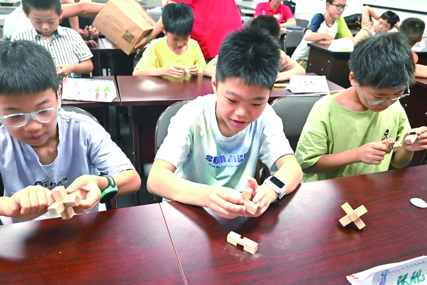 近日,在兰溪市兰江街道兰荫社区,孔明锁省级非遗代表性传承人诸葛文仓给孩子们带来了一堂孔明锁拼装体验课,让孩子们进一步感受传统文化的魅力。