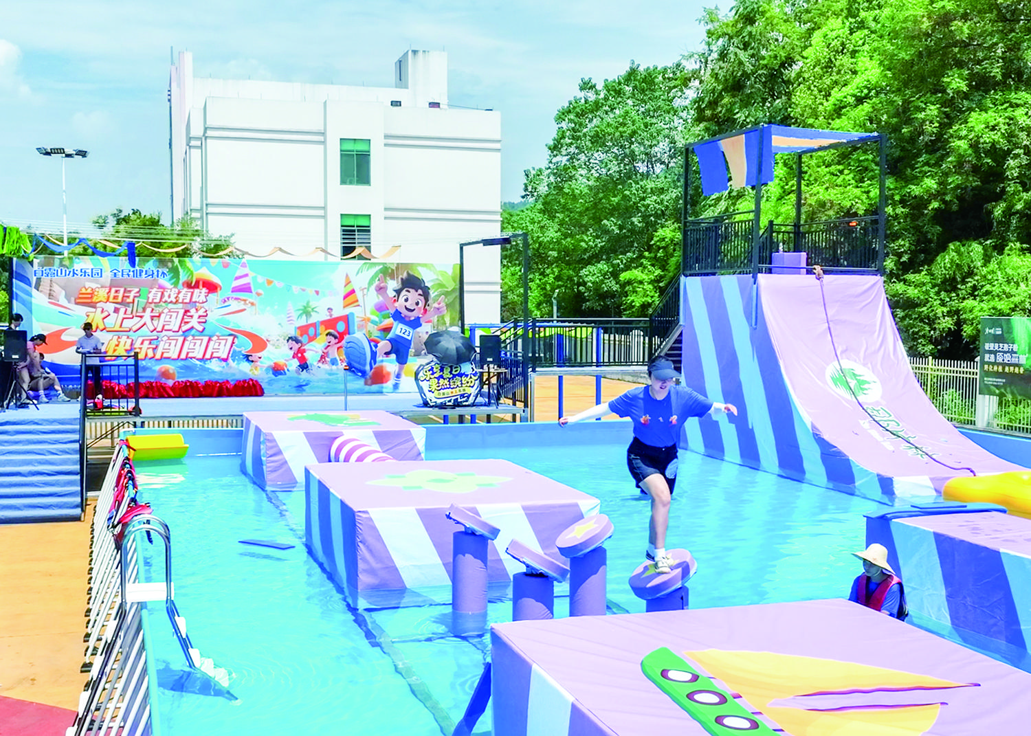 昨天,在兰溪市黄店镇白露山水上乐园,市民游客热情高涨,在水上冲关、障碍攀爬等趣味项目中奋勇闯关,挥洒汗水,尽享运动激情。