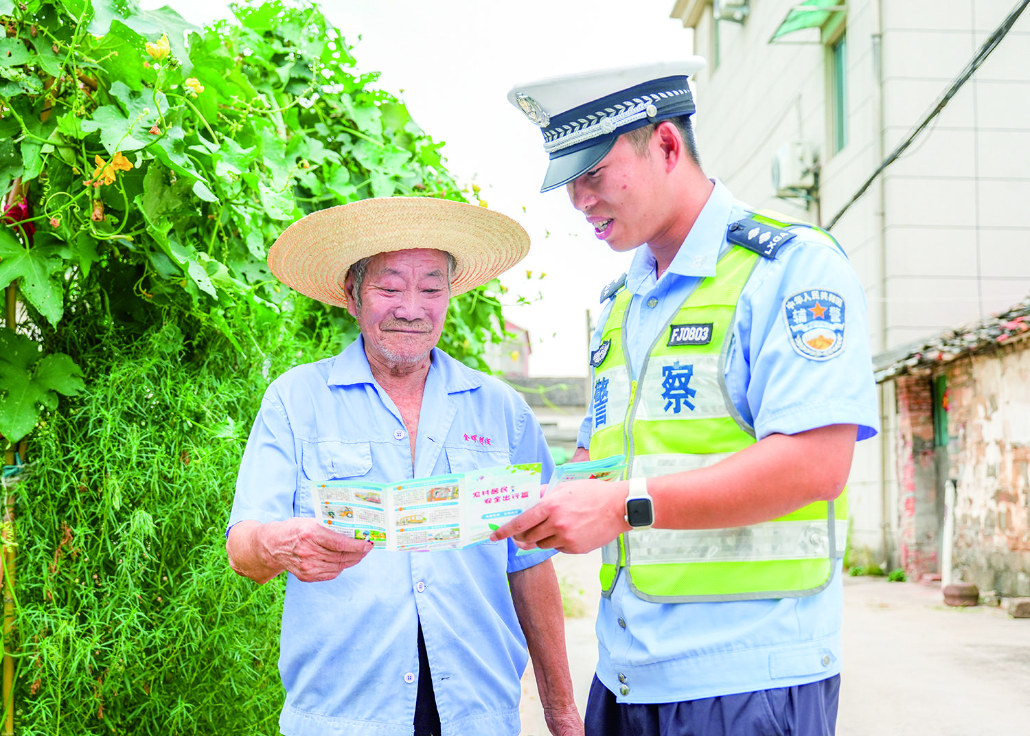 近日,兰溪市交警大队交警走进田间地头,开展美丽乡村行交通安全宣传,重点讲解农用车违法载人、无证驾驶、酒后驾驶等行为的危害,针对“一早一晚”务农时段视线不佳的情况,提醒群众注意观察路况、减速慢行,并向群众分发了反光贴和交通安全宣传资料,让安全可感可视。