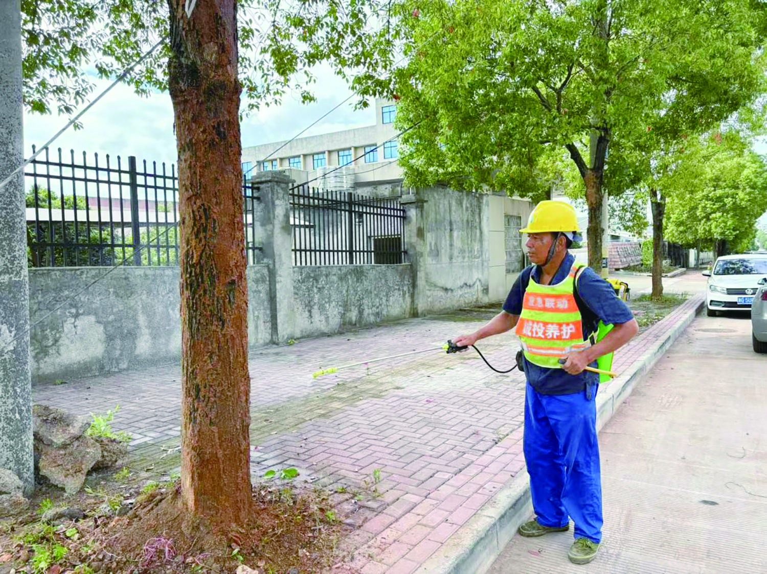 白蚁对绿化危害极大,不仅影响树木正常生长,还可能致树木死亡,产生安全隐患。为此,园林工人对各处的绿化树木进行深入排查,采用喷施药粉、放置诱杀点等方式,进行科学防治。