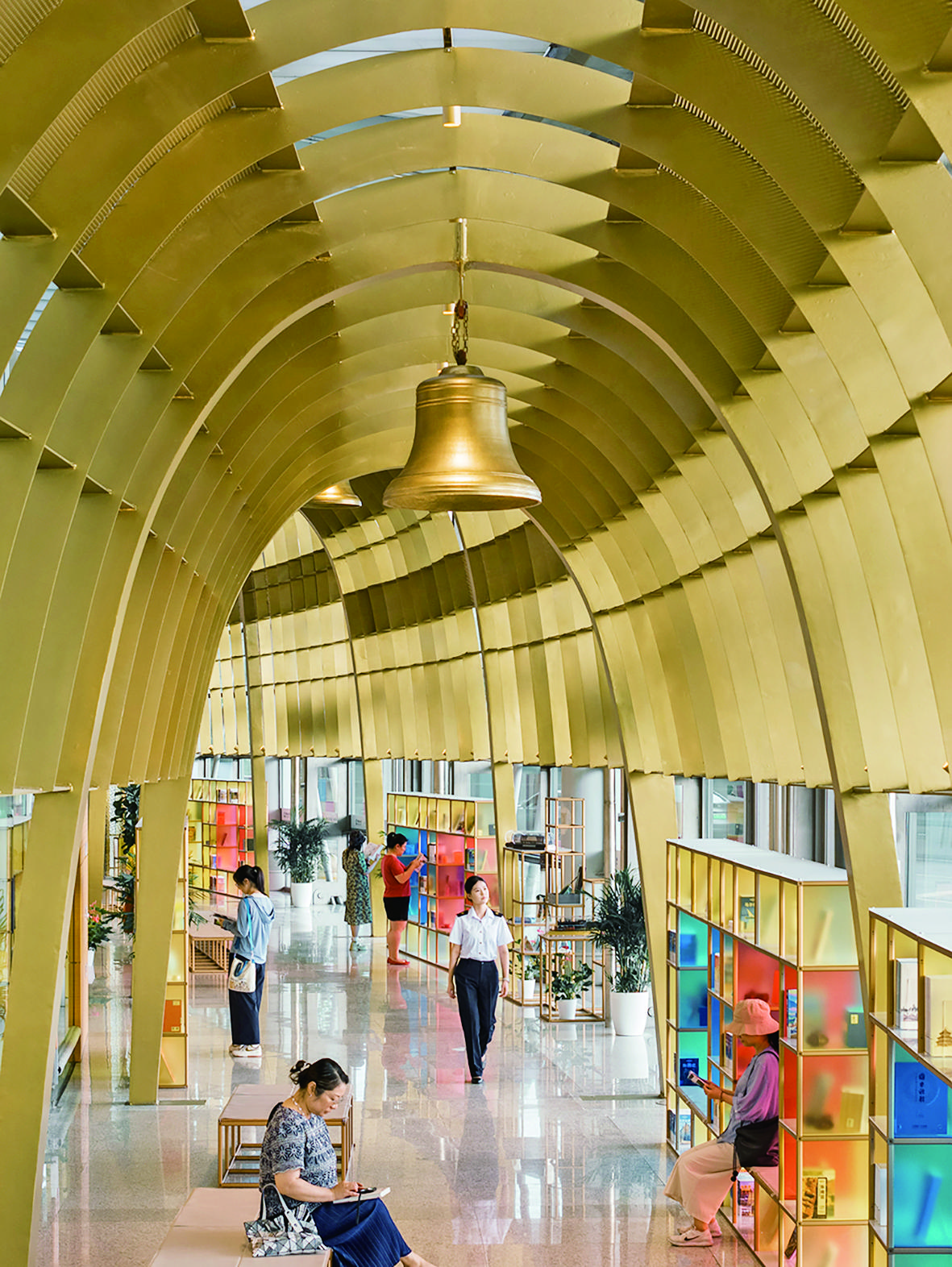 8月5日,旅客在铁路上海南站挑选书籍。当日,由铁路上海站与徐汇区图书馆(徐家汇书院)共同打造的汇悦读灯塔书房在铁路上海南站正式揭幕。据悉,这座占地约400平方米的灯塔书房共设九大板块,存放图书千余册,可供往来旅客免费取阅,是上海市首个设立在火车站内的“图书馆”。