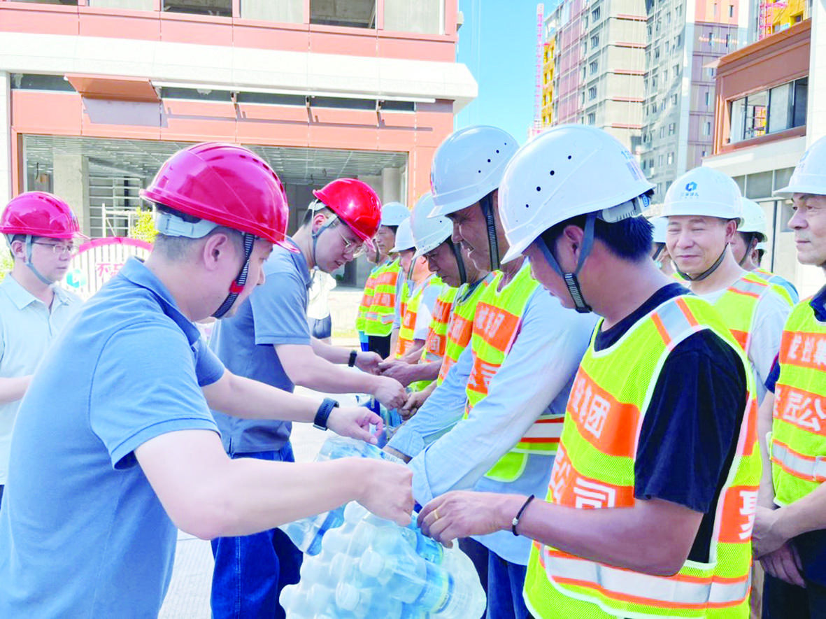 近日,兰溪市城投集团开展高温慰问活动,为高温作业岗位上的一线员工送上防暑降温清凉用品,让大家注意防暑降温,确保身体健康和生产安全。 记者 胡展翔 通讯员 章 涛 摄
