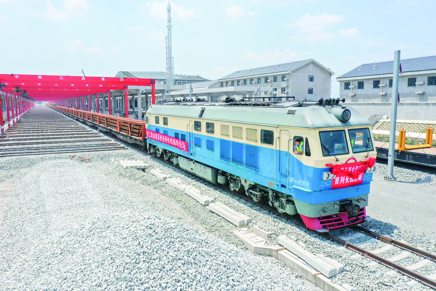 据悉,本次运送的500米长钢轨共计50根,能满足12.5公里线路铺设。 记者 徐正达 摄
