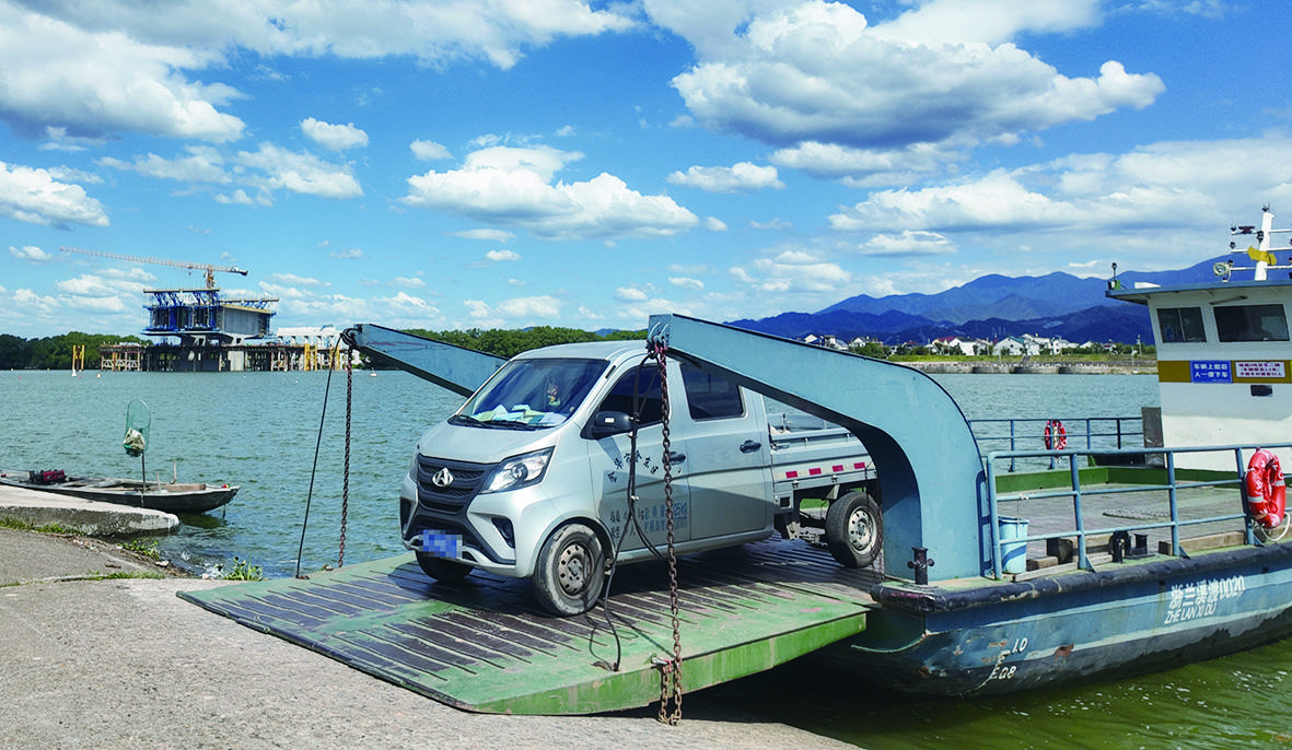 昨天,在位于兰溪市女埠街道汇潭村的汇潭渡口,44岁的船长吴国棋与检票员母亲,像往常一样为兰江两岸往来的群众、车辆进行摆渡。