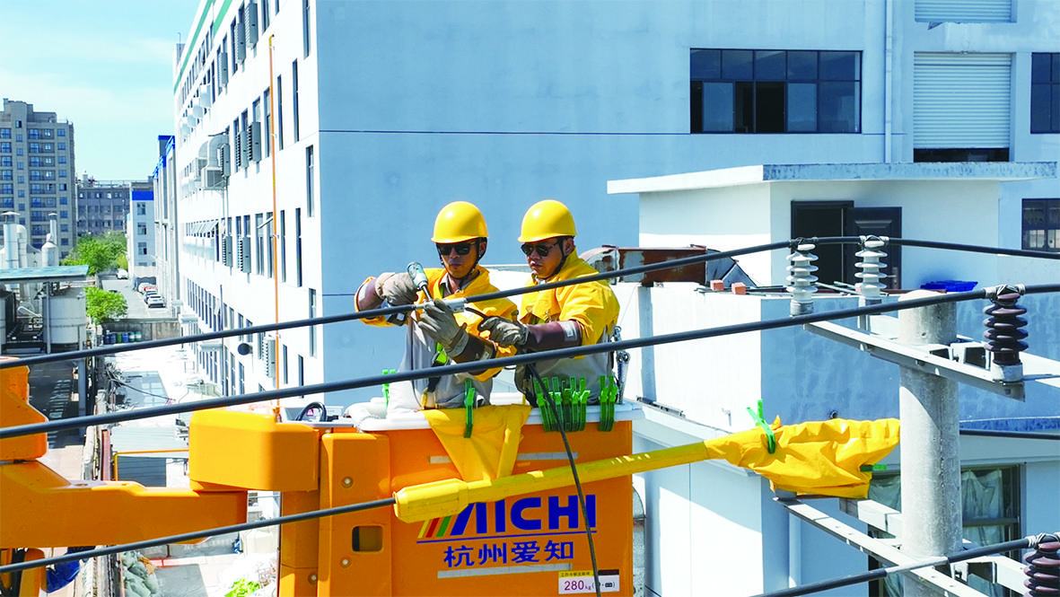 现场,作业人员顶着日头,穿上密实的绝缘服,佩戴绝缘橡胶手套,在10多米的高空开展作业,简单的操作就会让脸上的汗珠不断滚落,厚重的工装没一会就会湿透。
