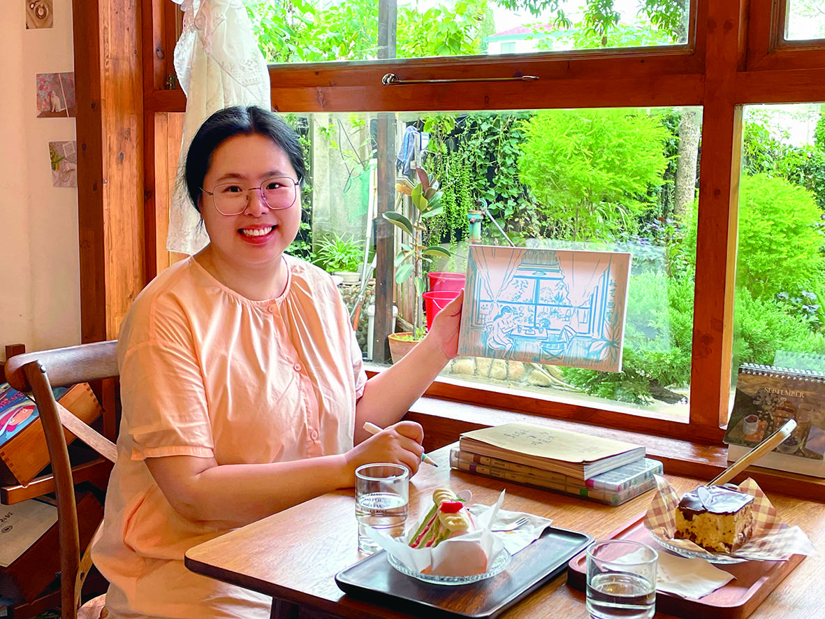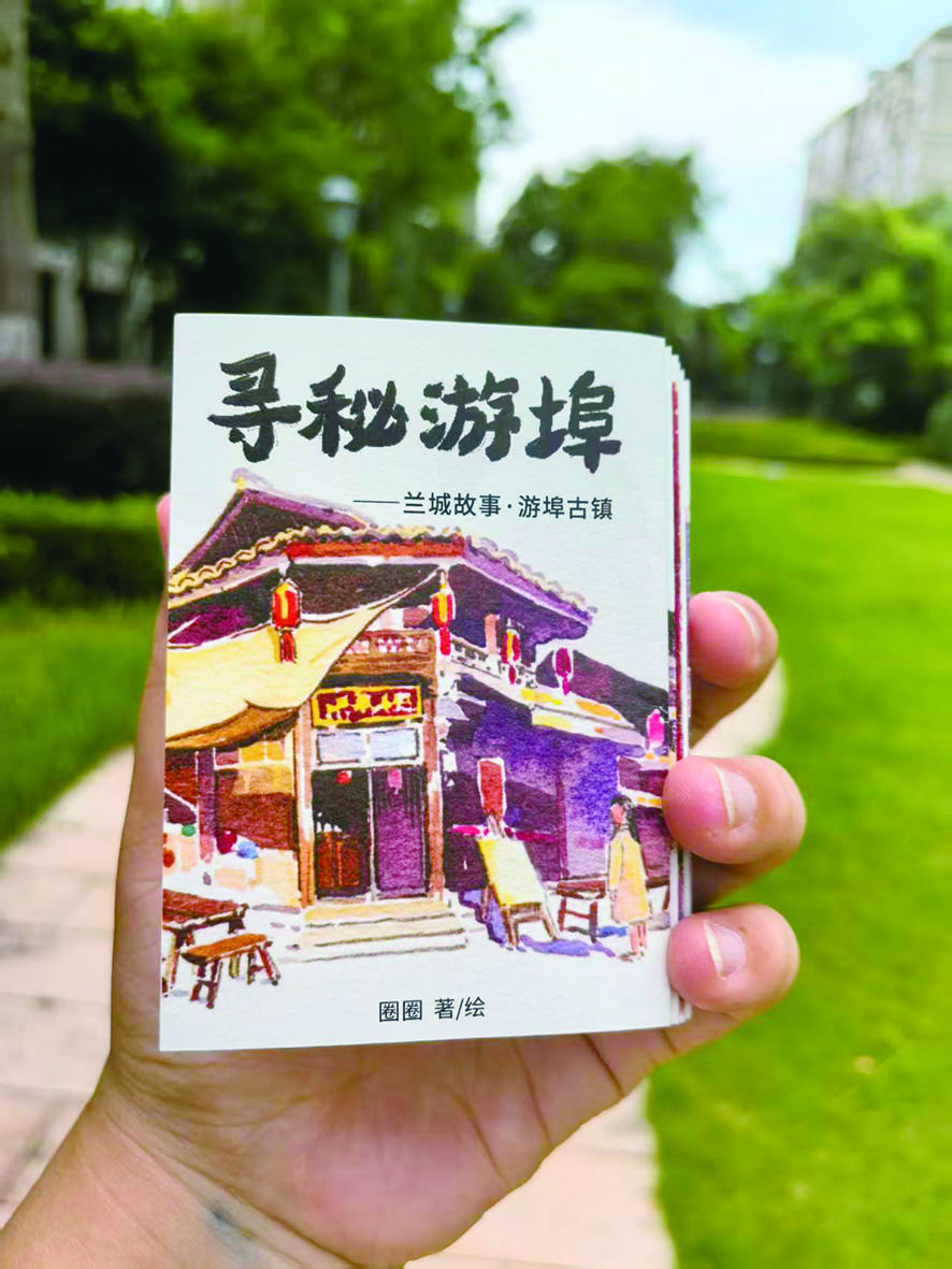 巴掌大的口袋书,封面是彩绘的游埠小馆,底下印着“圈圈 著/绘”。圈圈是耘艺画室的创始人,也是画室的主教老师。“叫圈圈,是因为胖嘛。”说完,她便爽朗一笑。