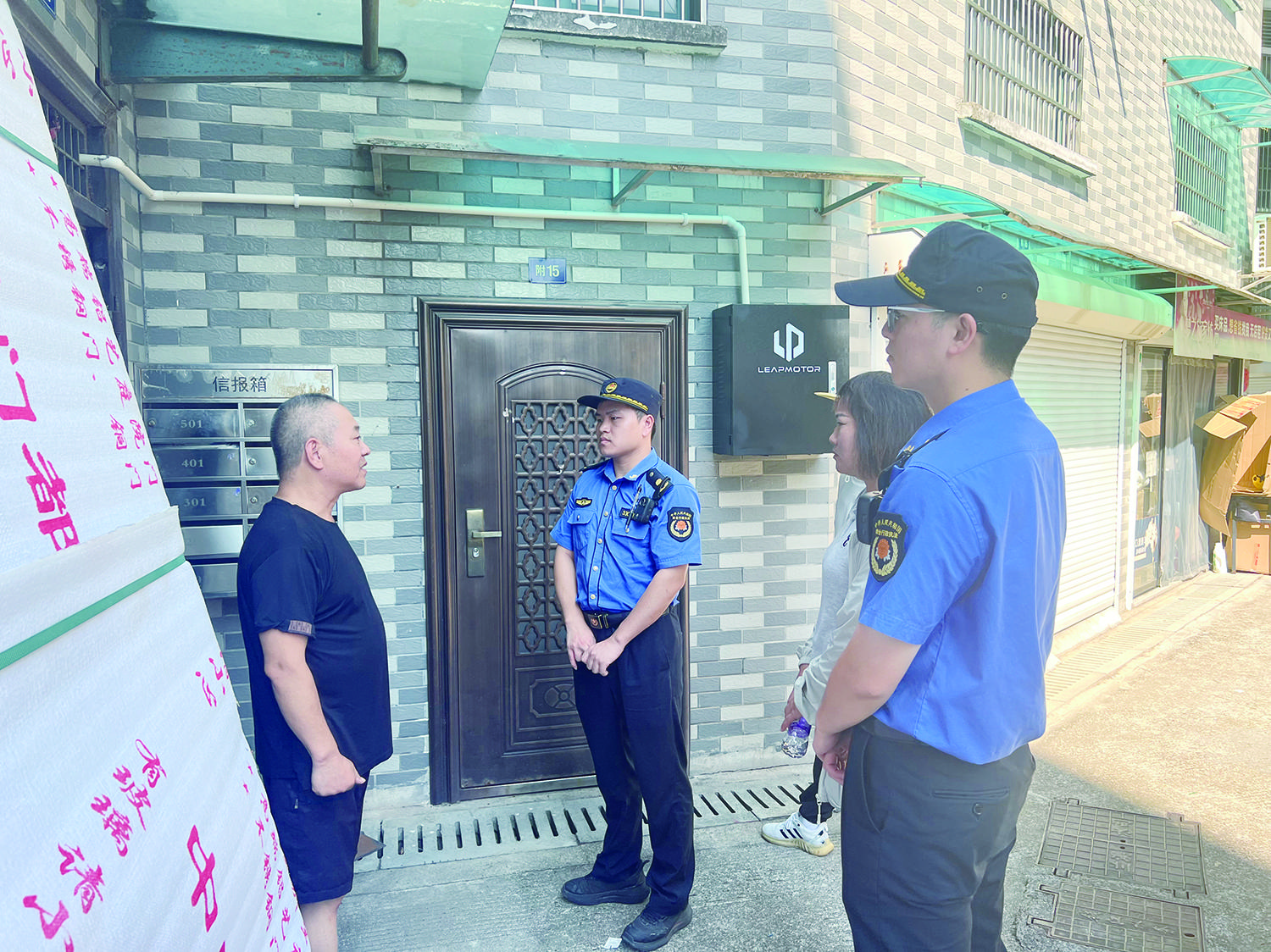 “你好,我们楼有个住户老是把一些废品堆在楼道里,不仅影响大家进出,有些废品脏兮兮的也不利于环境,你们能劝劝吗?”近日,兰江街道滨江社区居民方大妈向综合执法社区工作站反映问题后,执法队员曾庆森便联合社区工作人员第一时间上门了解情况。对于楼道堆物,执法队员并不是一清了之,在得知堆物当事人有家庭困难后,大家也商定一同上门慰问,既帮住户解决了堆物问题,也体现了执法的温度。