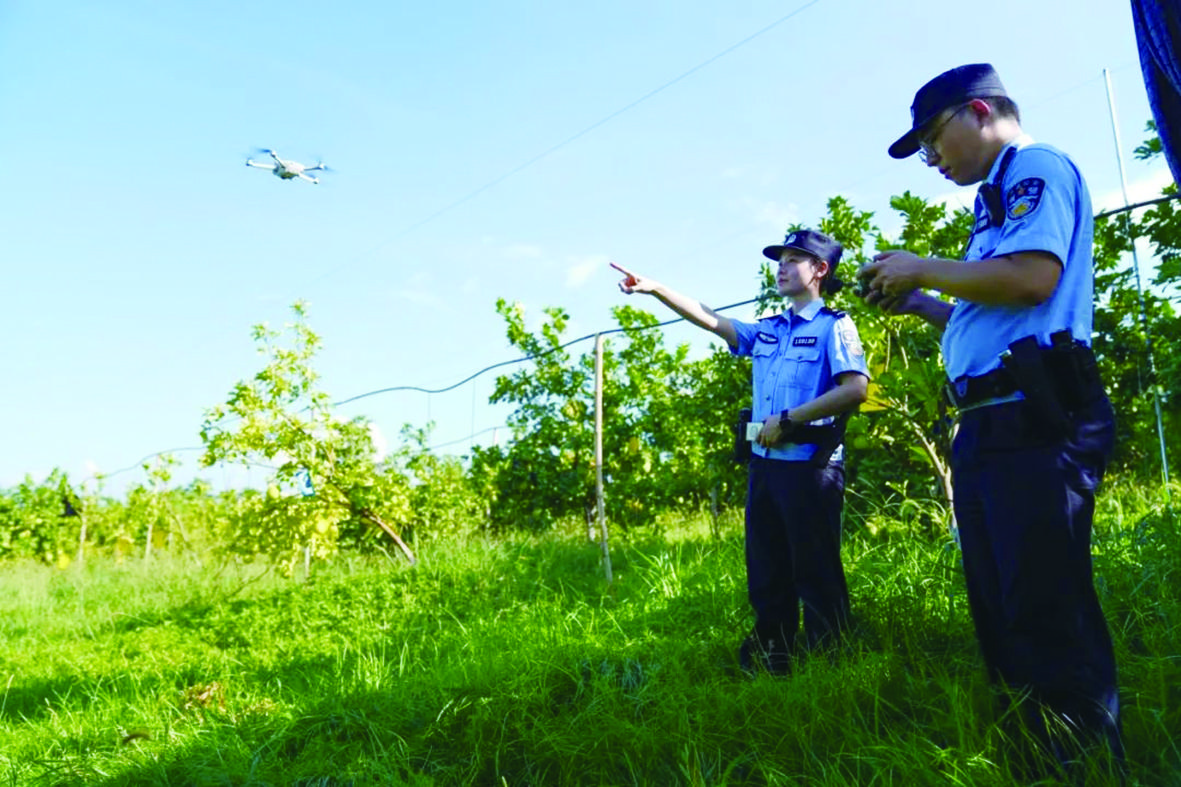 水晶柚基地面积广阔、地形复杂,传统地面巡逻难以覆盖所有角落。为破解这一难题,游埠派出所充分利用科技赋能,将无人机巡航纳入生态警务日常,形成“地面巡查+空中监控”的立体防护网。每周,生态警长都会操作无人机,对水晶柚基地进行数次全覆盖、无死角的空中巡查。通过无人机实时回传的画面,民警能直观掌握柚林生长状况、人员活动轨迹。日前,民警通过无人机发现基地深处一片隐蔽的柚林里,有异常人员活动迹象。附近巡逻队员立即根据无人机提供的信息赶到现场,当场制止了两名试图偷摘柚子的村民,并对他们进行了生态保护和法治宣传教育,有效保护了果农的辛勤劳动成果。