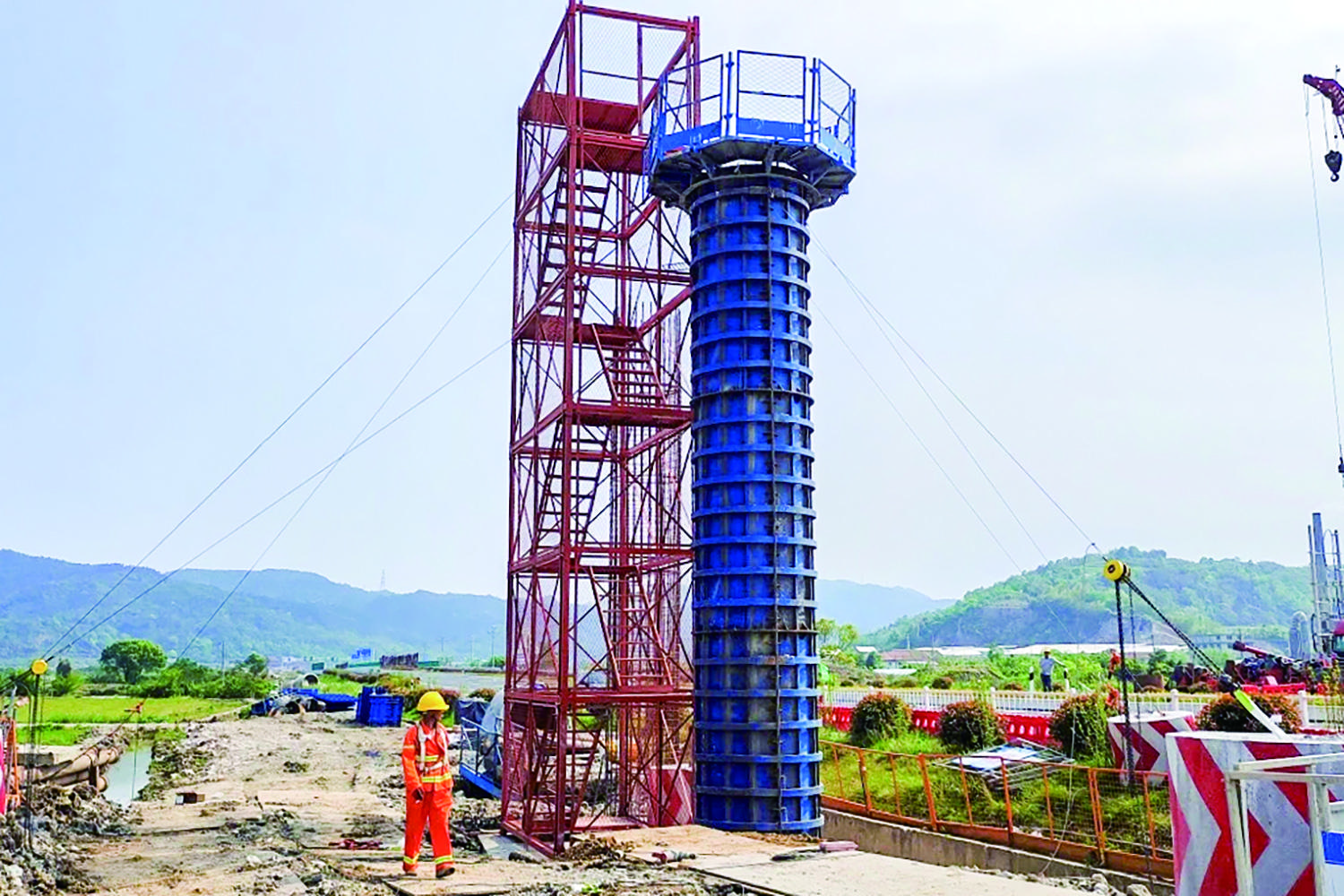 近日,S319义乌至江山公路兰溪马涧至石阜岭段整治工程项目首件立柱浇筑完成。