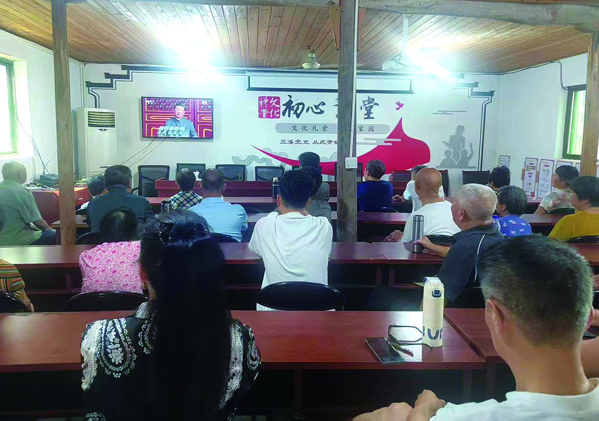 昨天上午8时30分,兰溪市女埠街道上新屋村的文化礼堂已聚集了不少干部群众。村干部、老党员和不少村民聚在一起,等待纪念中国人民抗日战争暨世界反法西斯战争胜利80周年大会的直播。大屏幕前,大家的期待之情溢于言表。