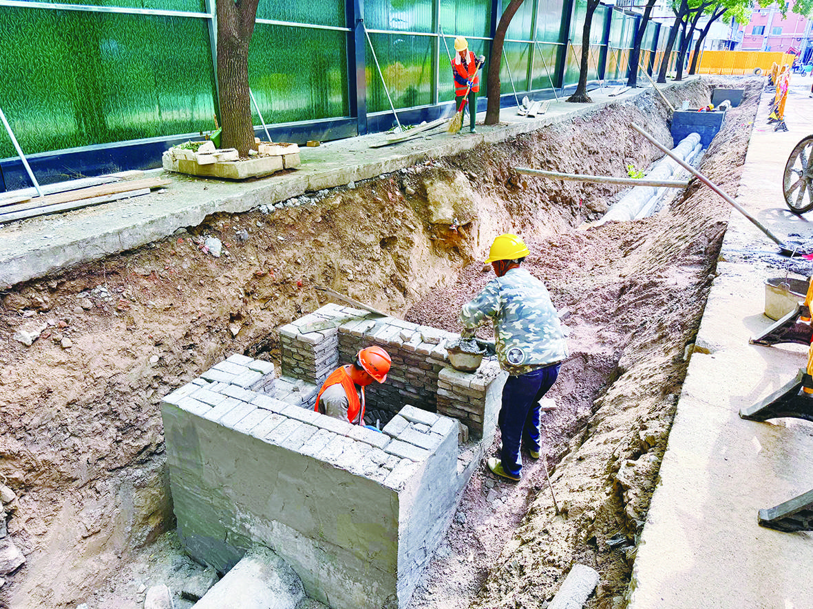 昨天,工人在兰溪市城区地下管网改造提升工程一标段现场施工作业。
