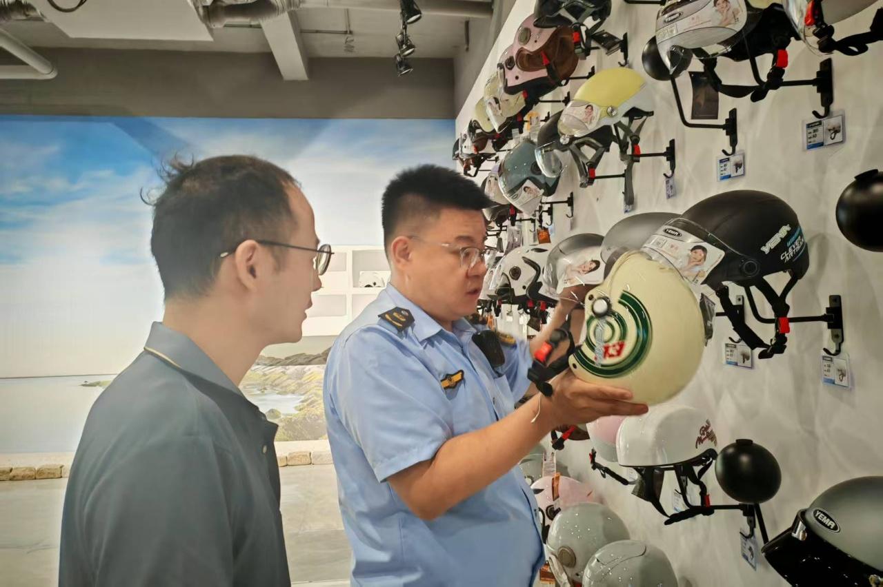 导报讯 近期,天气持续高温,导致摩托车、电动车头盔内衬脱胶问题投诉激增。兰溪市市场监管局迅速行动,对头盔生产企业开展检查,全力保障消费者“头顶安全”。