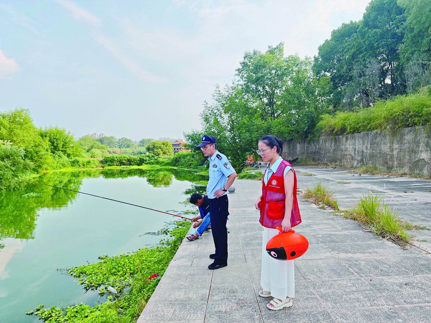 “大爷大妈,这河岸湿滑,可得小心着点,别滑倒咯。”在日常巡逻中,民警看到功能区内河道边常有老年人在那洗菜,便会停下来跟老人们拉家常,提醒老年人提升自我安全防范意识。