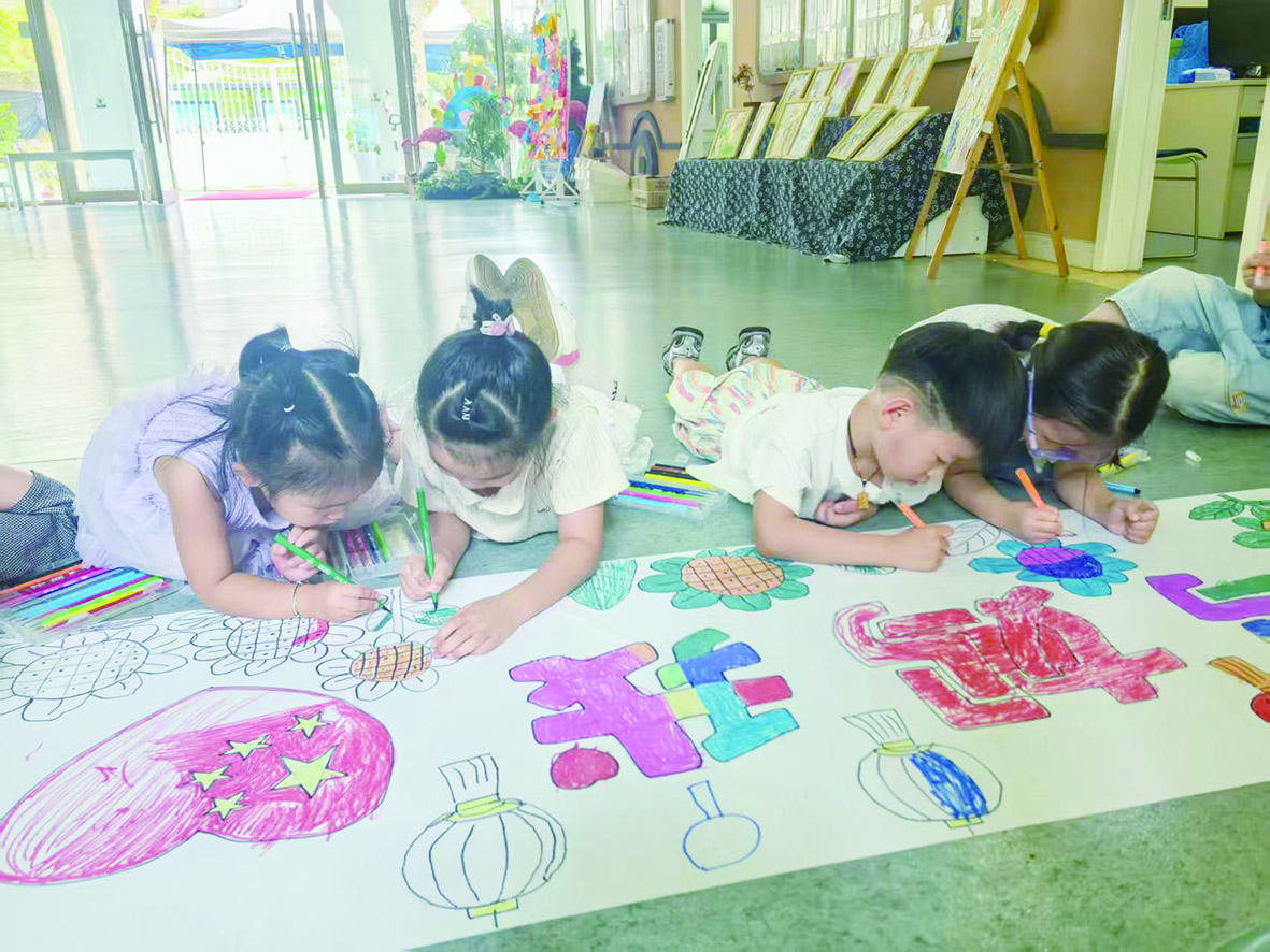 现场,小朋友们用稚嫩的画笔,手绘长卷,表达对祖国的热爱与赞美。