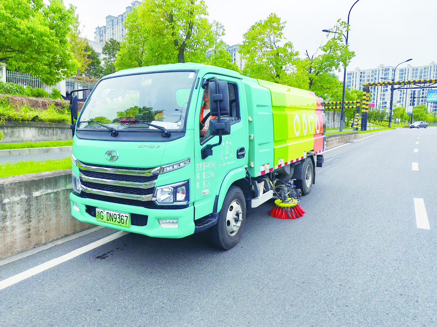 昨天上午9时,记者在市区上园路看到,一辆纯电动洗扫车正有条不紊地开展清扫作业。随着车辆缓缓前行,底部的旋转扫刷快速转动,路面很快被洗扫得干干净净。