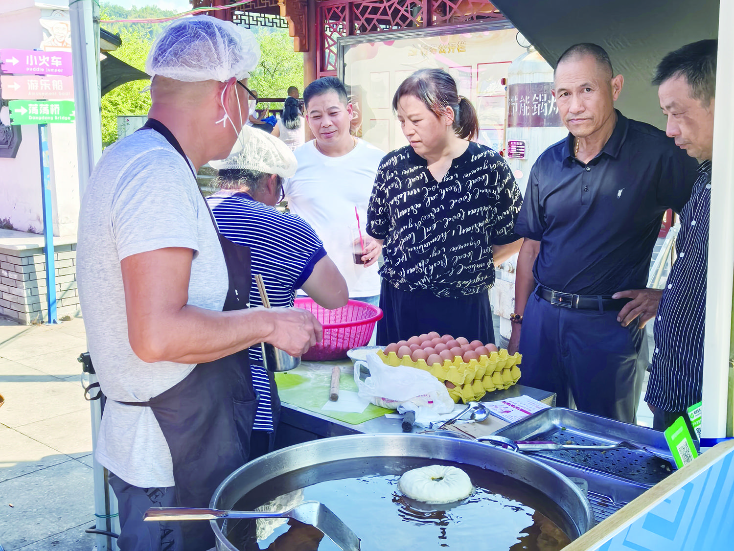 活动现场,各类小吃摊位前香气扑鼻,游客们一边品尝美味,一边聆听摊主讲述小吃背后的“增收故事”,沉浸式感受“舌尖上的共富”。