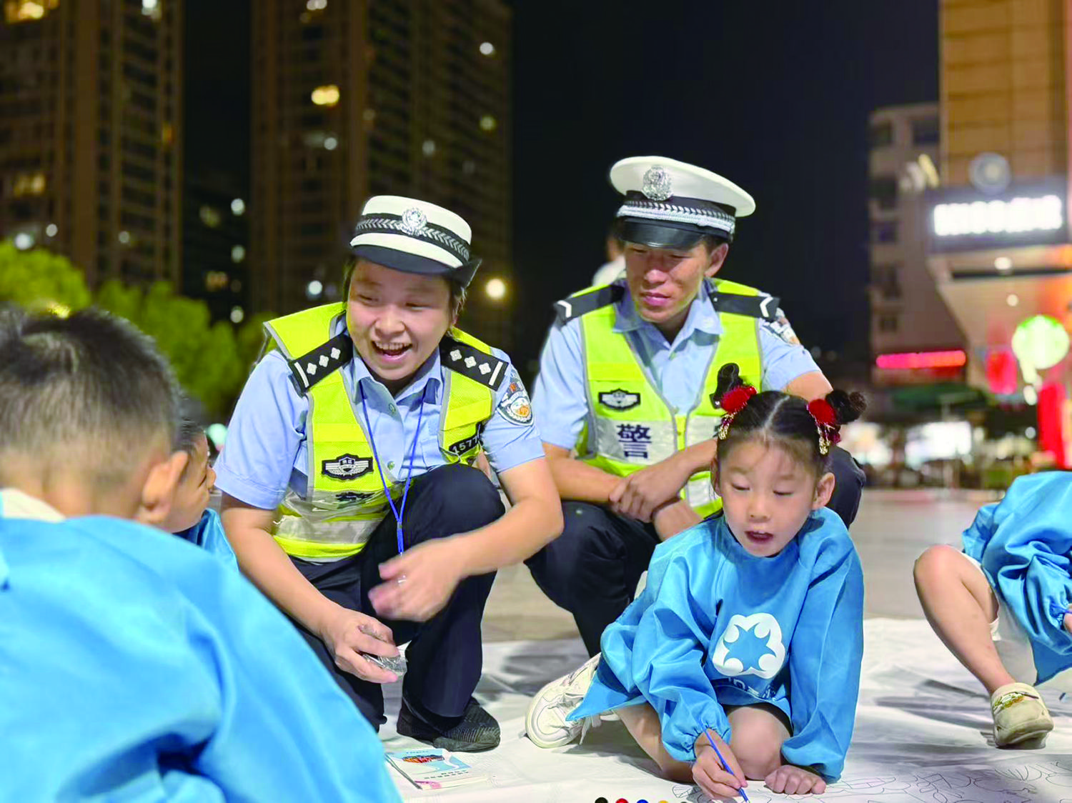 10月14日晚,兰溪市公安局交警大队联合兰江街道青松社区“家门口青少年宫”,在嘉泰新时代广场开展“百米画卷,童绘平安”主题活动。