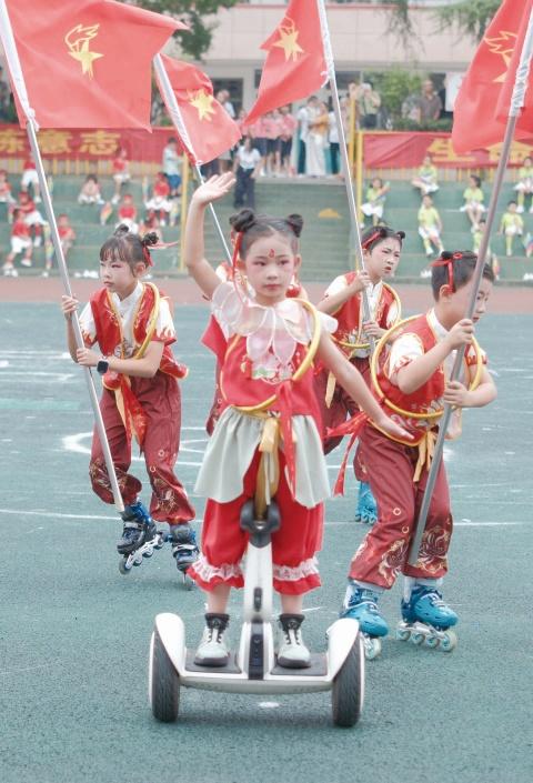 10月15日,在兰溪市云山小学第52届秋季运动会上,脚踩风火轮的“哪吒”成了一大亮点。