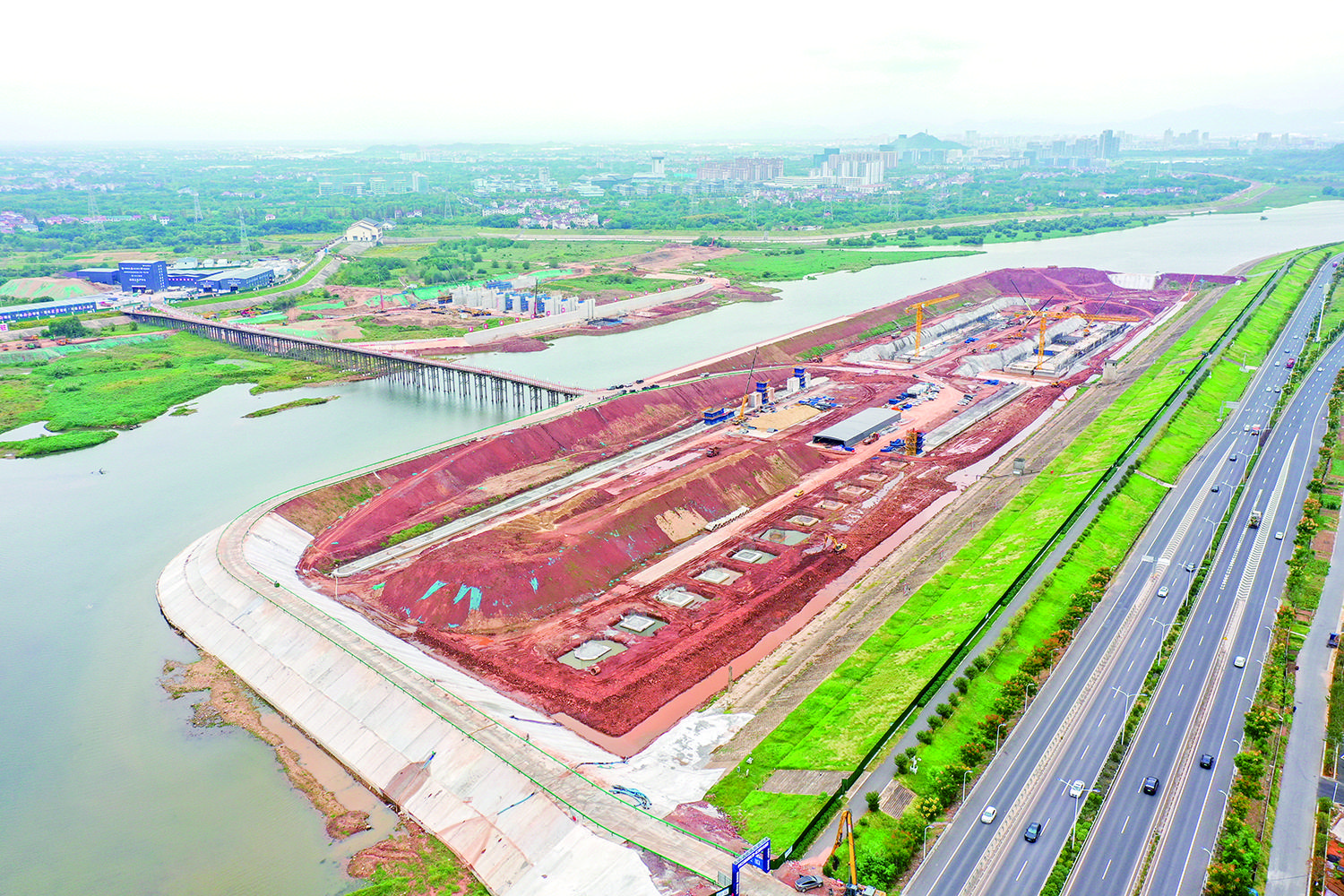 导报讯 昨天,记者在金华江三级航道整治工程一期工程第SG02标段施工现场看到,挖掘机、推土机、塔吊、自卸车等大型机械设备有序作业,400多名工人正分散在各施工点位进行船闸和泄水闸施工。