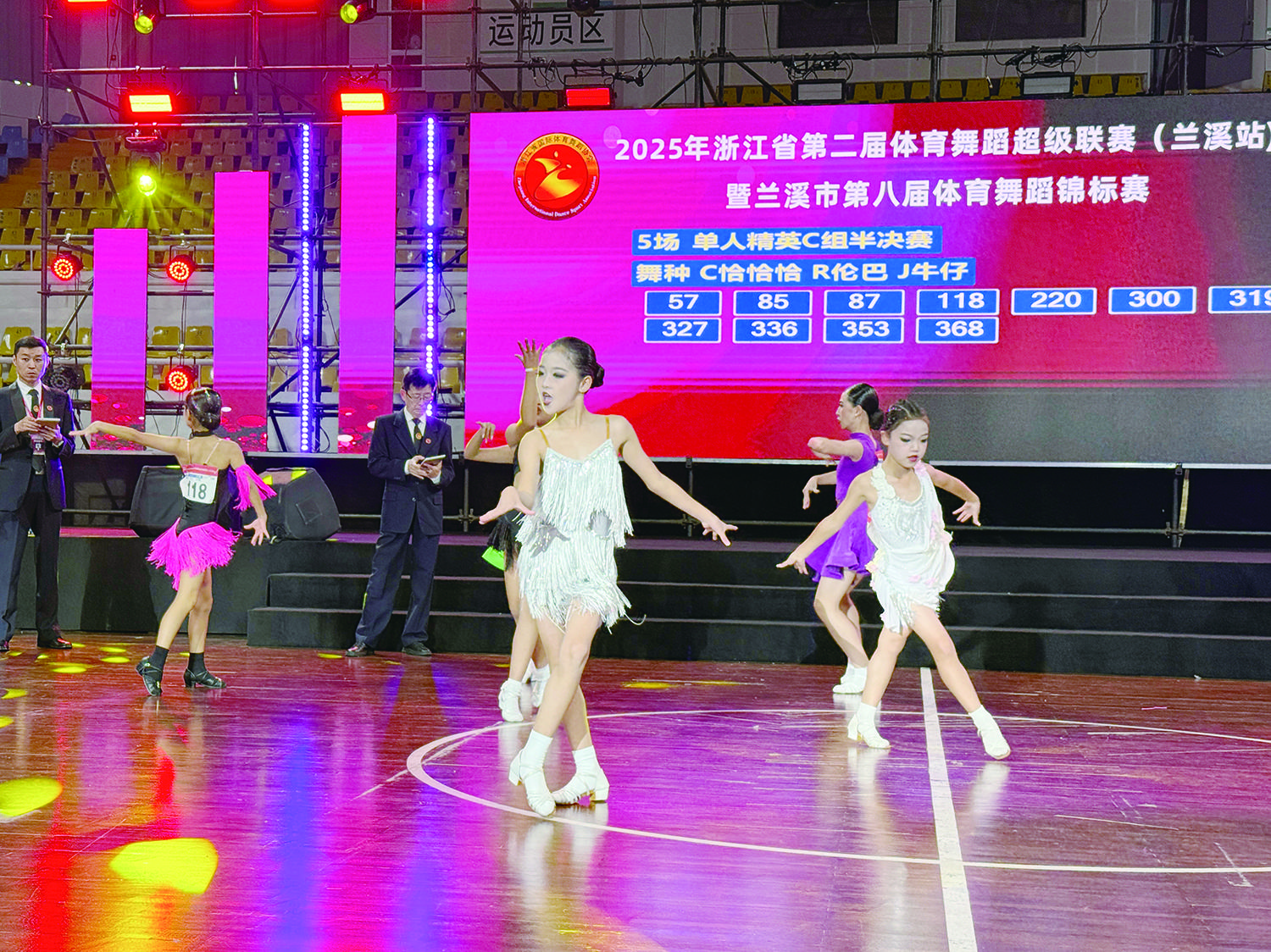 近日,2025年浙江省第二届体育舞蹈超级联赛(兰溪站)比赛活力开赛,来自全省各地的选手们齐聚在兰溪体育中心,在舞池中挥洒激情、绽放风采,诠释体育舞蹈的力与美。