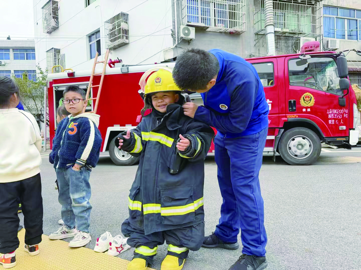 近日,在兰溪市横溪镇中心幼儿园,横溪镇专职消防队为孩子们带来一场生动的消防安全课。消防员现场展示消防服、水带等装备,还手把手指导幼儿和教职工模拟使用灭火器,将抽象的安全知识变成可触摸、可操作的体验,为孩子们筑牢安全“防火墙”。
