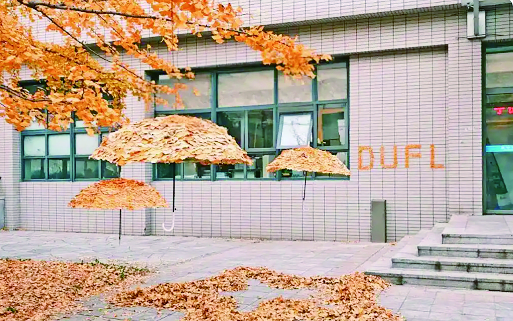 近日,大连外国语大学后勤老师肖丽娜带着三位保洁阿姨化身“大地艺术家”,她们将散落满地的银杏叶精心拼凑成各式创意图案,原本寻常的校园小道摇身一变成为童话般的打卡地,让师生们在秋日里收获了意外的温暖与惊喜。