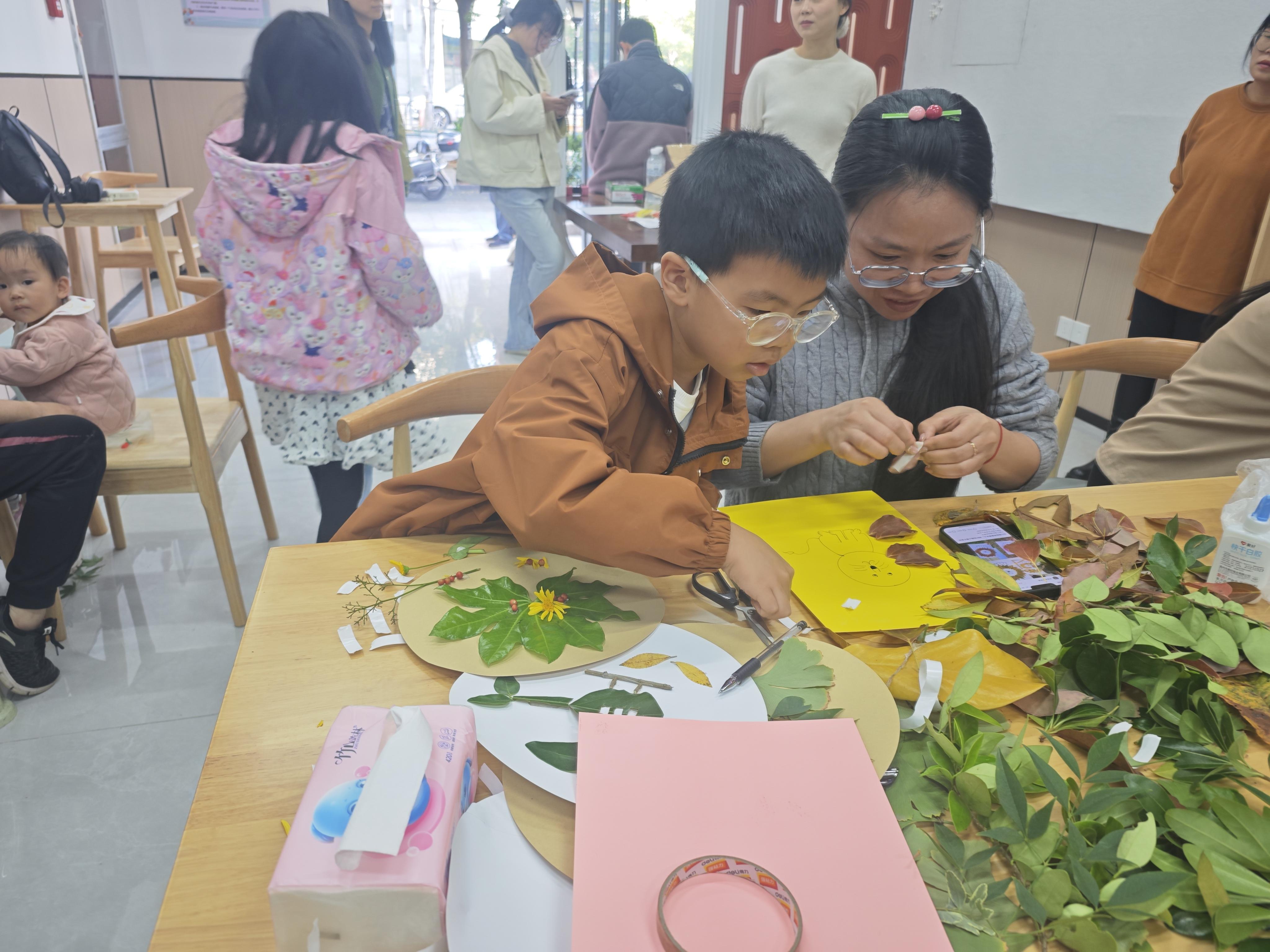 昨天,在兰溪市兰江街道悦兰社区,正在放秋假的部分学生及其家长,参加了有趣的“拾叶成画,与秋共舞”亲子树叶粘贴画活动。