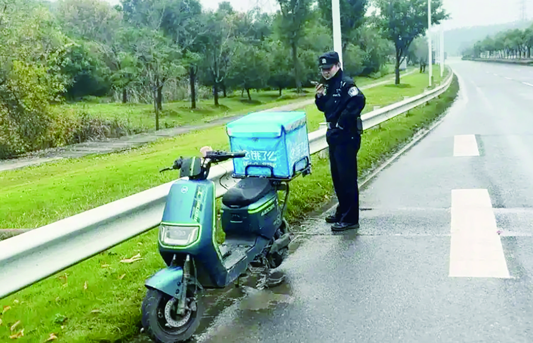 正在辖区内巡逻的民警张明磊和同事立即驱车赶往现场,隧道口灯光昏暗,只见一辆沾满泥水的电动车静静地停在路边。“看到电动车的那一刻,我心里就揪了一下。”张明磊事后回忆,“这辆车对骑手来说就是‘饭碗’,不是万不得已,骑手绝不会丢在这里好几天。”