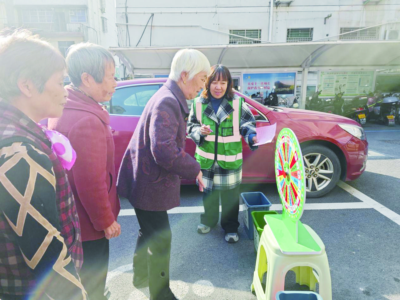 本次运动会设置了“欢乐套圈”“夹玻璃球”“吹球过河”“投壶”等集趣味性、竞技性和协作性于一体的游戏项目。网格员还对居民进行“垃圾分类大转盘”知识问答,将环保理念融入游戏之中,让居民在玩乐中巩固垃圾分类知识。 记者 成 超 摄
